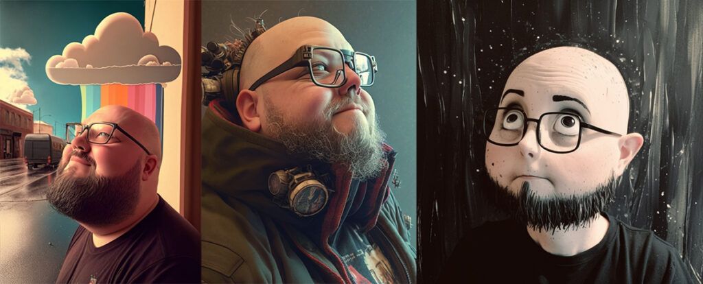 Und dann arbeite ich wieder im Pfauenhäuschen. Wenn die Sonne scheint ist es hier drin auch schnell warm. Und hier ist Licht. Ich finde Licht im Prinzip ganz gut. Und wenn das Wetter zuzieht, ziehe ich den Vorhang zu und verschließe meine Augen vor der Realität. Und dann beschäftige ich mich mit künstlichen Intelligenzen. Besonders im Kunstbereich. Oder auch mal als Hilfe bei HTML-Fragen. Dass die mir da ein paar Code-Schnipsel vorlegen. Das klappt ganz gut, muss man aber auch wissen wie man fragt. Und dann die Erzeugung von Bildern und Illustrationen via Midjourney. Mit Dall-E, Stumble Diffusion und diversen anderen [Deep-Learning-]Text-zu-Bild-Generatoren konnte ich mich nicht anfreunden. Obwohl ja viele Leute, z. B. denen ich auf Mastodon folge, oft von Stumble Diffusion reden. Midjourney ist eher für AI-Art gemacht. Bis zur Version 5.0 waren da aber auch mal Leute mit 6 Fingern an der Hand dabei. Naja, Schwamm drüber.